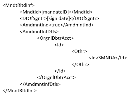 De nieuwe IBAN moet in de tag “debtor iban” DebtorAccount <DbtrAcct> worden toegevoegd.
